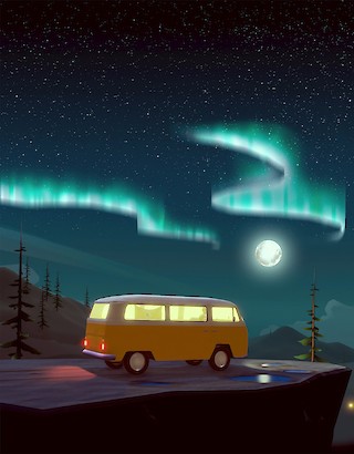 «Northbound» ist ein narratives, exploratives Adventure Game. Der Spielende schlüpft in die Rolle eines Studienabgängers, der sich mit zwei alten Jugendfreunden in einem Campingbus auf einen Roadtrip nach Skandinavien begibt. Obwohl auf der Fahrt lange Strecken zurücklegt werden, fokussiert «Northbound» allein auf den Innenbereich des Fahrzeugs. Hier entwickelt sich durch die Dialoge der Mitfahrenden eine dichte Narration, die zunächst auf die Ausgelassenheit und Oberflächlichkeit einer solchen Unternehmung schliessen lässt, die sich aber mit der Zeit in ein differenziertes Psychogramm der Insassen verwandelt. Der Spielende wird Zeuge dieser Gespräche, die manche enttäuschte Erwartungen beinhalten und treibt sie durch seinen Avatar selbst voran.
