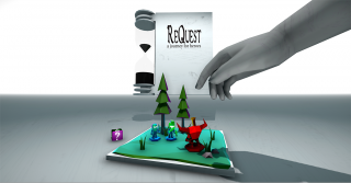 «ReQuest - A journey for heroes» ist ein Adventure-Spiel, das mit einer Virtual-Reality-Brille gespielt wird. Es thematisiert die klassische Heldenreise: Die Spielerin oder der Spieler hilft den Spielfiguren, eine Reise über fünf Akte zu überstehen. Geht alles gut, kehren die Ausgesandten als Helden nach Hause zurück. Dieser klassische Stoff wird im Game auf eine Brettspiel-Ästhetik reduziert, wobei die animierten Spielfiguren autonom zu handeln scheinen und ein gewisses Eigenleben besitzen. Der Spielende betritt mit der VR-Brille einen virtuellen Raum, wo das Spielgeschehen der Heldenreise kreisförmig um ihn/sie herum angeordnet ist und er/sie durch Körperbewegungen im realen Raum das Spielgeschehen im Virtuellen bestimmt (er/sie positioniert dort Spieffiguren und Spielfelder etc.).