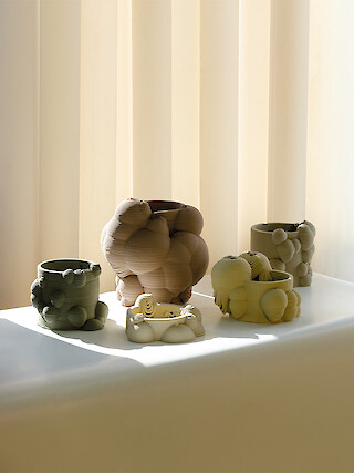 Rafael Gil Cordeiro hat seinen Schlaf getrackt und aus Daten wie Herzfrequenz, Dauer oder Schlafphasen 3D-Modelle entwickelt. Diese hat er anschliessend in Keramik gedruckt. Die Kombination von etwas so Elementarem wie dem Thema Schlaf mit dem vertrauten Material Keramik und einer zeitgenössischen Technologie macht das Projekt so reizvoll. So werden Phasen unseres Lebens, die wir nicht bewusst erleben können, in spannenden Objekten anschaulich.