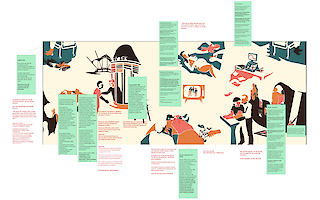 Diese Bachelorarbeit, entstanden in Zusammenarbeit mit der Aids-Hilfe Schweiz, widmet sich den gesellschaftlichen Errungenschaften rund um HIV/Aids. Die Arbeit gliedert sich in zwei Teile: Eine Serie von Illustrationen, die zentrale Entwicklungen und Perspektiven zum Thema visualisieren, sowie ein grossformatiges Textilobjekt, das die Erzählung über Stoff in den Mittelpunkt stellt. Während die Aussenseite des Textilobjekts wichtige Meilensteine der HIV/Aids-Geschichte in der Schweiz abbildet, schafft die Innenseite einen intimen Raum für persönliche Reflexionen und Fragen.