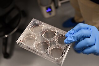 Diese weltweit einzigartige Installation ermöglicht die direkte Kommunikation mit im Labor gezüchteten, lebenden Neuronenzellen – so genannten Gehirn-Organoiden. Durch Berührung einer künstlichen Haut erzeugen Nutzer:innen Impulse im Organoid, dessen Reaktion als Bewegung in derselben Membran zurückkommt.
